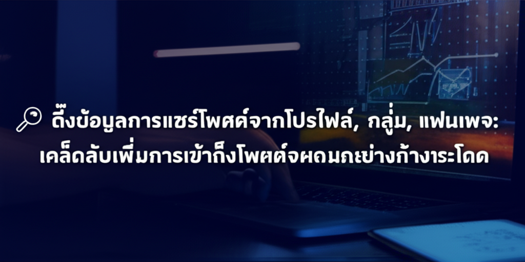 🔍 ดึงข้อมูลการแชร์โพสต์จากโปรไฟล์, กลุ่ม, แฟนเพจ: เคล็ดลับเพิ่มการเข้าถึงโพสต์ของคุณอย่างก้าวกระโดด ในยุคที่โซเชียลมีเดียมีบทบาทสำคัญ การเพิ่มการเข้าถึง (Reach) ให้กับโพสต์ของคุณเป็นสิ่งจำเป็นอย่างยิ่ง ไม่ว่าคุณจะเป็นธุรกิจที่ต้องการโปรโมทสินค้าและบริการ หรือเป็นบุคคลทั่วไปที่ต้องการแบ่งปันเรื่องราวและสร้างปฏิสัมพันธ์ การเข้าใจกลไกการแชร์โพสต์และดึงข้อมูลการแชร์จึงเป็นกุญแจสำคัญสู่ความสำเร็จ บทความนี้จะพาคุณไปเจาะลึกวิธีการต่างๆ ในการเพิ่มการเข้าถึงโพสต์ของคุณ ผ่านการวิเคราะห์ข้อมูลการแชร์จากโปรไฟล์, กลุ่ม และแฟนเพจต่างๆ ทำไมการดึงข้อมูลการแชร์โพสต์ถึงสำคัญ? การวิเคราะห์ข้อมูลการแชร์โพสต์ ช่วยให้คุณเข้าใจพฤติกรรมของผู้ใช้งานบนโซเชียลมีเดียได้อย่างลึกซึ้ง คุณจะทราบว่าโพสต์ประเภทใดที่ได้รับความนิยม เนื้อหาแบบไหนที่ถูกแชร์มากที่สุด และกลุ่มเป้าหมายของคุณสนใจอะไร ข้อมูลเหล่านี้จะช่วยให้คุณปรับปรุงกลยุทธ์การสร้างคอนเทนต์ให้ตรงใจกลุ่มเป้าหมายมากขึ้น และเพิ่มโอกาสในการเข้าถึงผู้ใช้งานใหม่ๆ เข้าใจกลุ่มเป้าหมาย: ทราบว่าพวกเขาชอบเนื้อหาแบบไหน แชร์โพสต์อะไร ปรับปรุงคอนเทนต์: สร้างเนื้อหาที่ตรงใจกลุ่มเป้าหมายมากขึ้น เพิ่มการเข้าถึง: ดึงดูดผู้ใช้งานใหม่ๆ ให้มาสนใจโพสต์ของคุณ วัดผลแคมเปญ: ประเมินประสิทธิภาพของแคมเปญการตลาด วิธีการดึงข้อมูลการแชร์โพสต์จากแหล่งต่างๆ 1. การดึงข้อมูลจากโปรไฟล์ส่วนตัว การวิเคราะห์การแชร์โพสต์จากโปรไฟล์ส่วนตัวของคุณเอง เป็นจุดเริ่มต้นที่ดี คุณสามารถตรวจสอบได้ว่าโพสต์ใดที่คุณแชร์ออกไป และใครบ้างที่เข้ามาแสดงความคิดเห็นหรือกดไลค์ การสังเกตแนวโน้มเหล่านี้จะช่วยให้คุณเข้าใจว่าเพื่อนของคุณสนใจเนื้อหาประเภทใด และคุณควรสร้างคอนเทนต์แบบไหนเพื่อดึงดูดความสนใจของพวกเขา นอกจากนี้ คุณยังสามารถใช้เครื่องมือวิเคราะห์ข้อมูลโซเชียลมีเดีย (Social Media Analytics) เพื่อตรวจสอบข้อมูลเชิงลึก เช่น จำนวนการเข้าชมโปรไฟล์ จำนวนผู้ติดตาม และสถิติการมีส่วนร่วมกับโพสต์ต่างๆ 2.